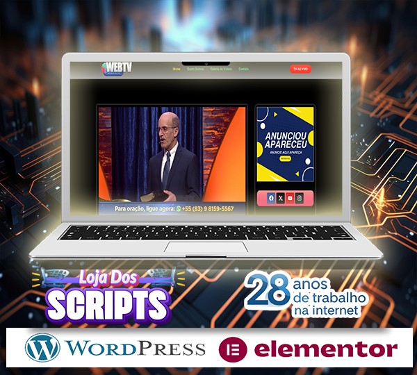Receba um script completo e funcional, idêntico ao que você vê em nossas demos! Este é um site pré-montado especialmente desenvolvido para transmissão ao vivo de WEB TV, com design moderno, responsivo e pronto para uso imediato.